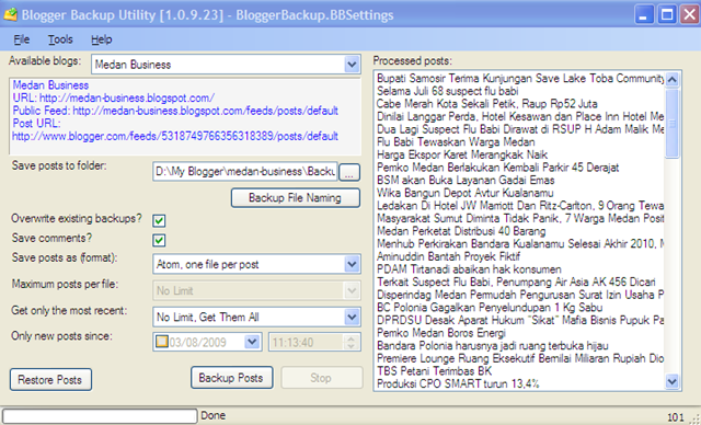 Hasilnya semua artikel dan komentar kita akan tersimpan dalam folder backup yang biasanya ada di dalam folder My Documents. Kemudian jika kita ingin me-restore hasil backup tersebut, tinggal klik Restore Posts. Mudah sekali kan?
